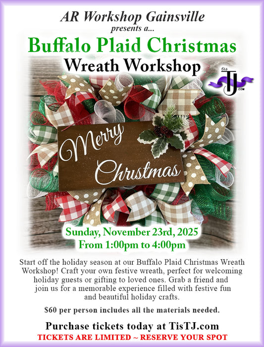 EVENT: November 23, 2025 - Buffalo Plaid Christmas Wreath Workshop - AR Workshop Gainsville