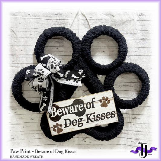 Paw Print, Beware Dog Kisses - Handmade Wall Decor