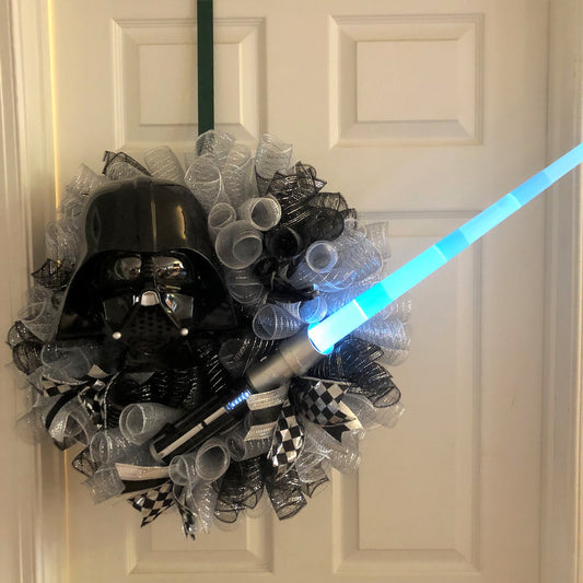 Chunky Bernat Yarn Candy Cane Wreath w/ Red Green Sheer Bow